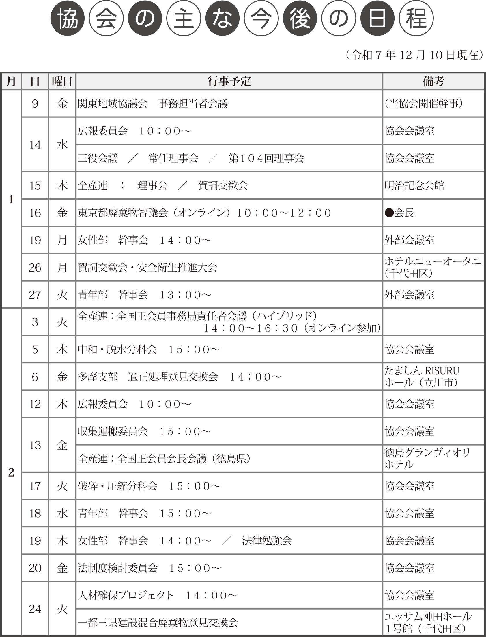 行事カレンダー